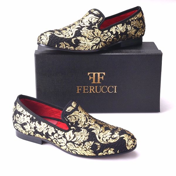 Onedrop Handmade Men Dress Shoes Suede Black Gold Rhinestone Party Wed