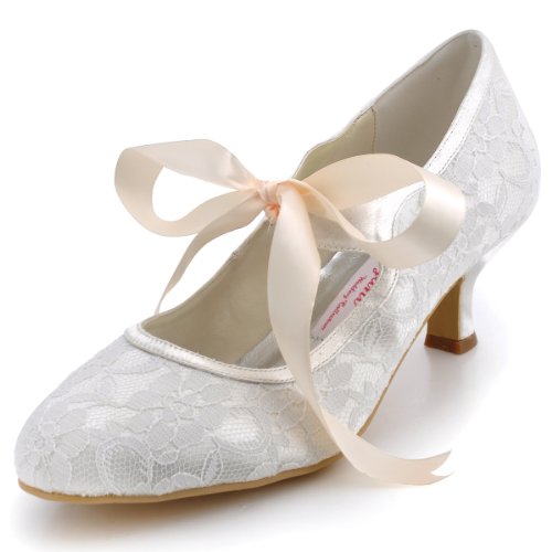 Amazon Com Jiajia 01129 Women S Bridal Shoes Closed Toe T Strap 1 8 Low Heel Lace Satin Pumps Imitation Wedding Shoes Pumps