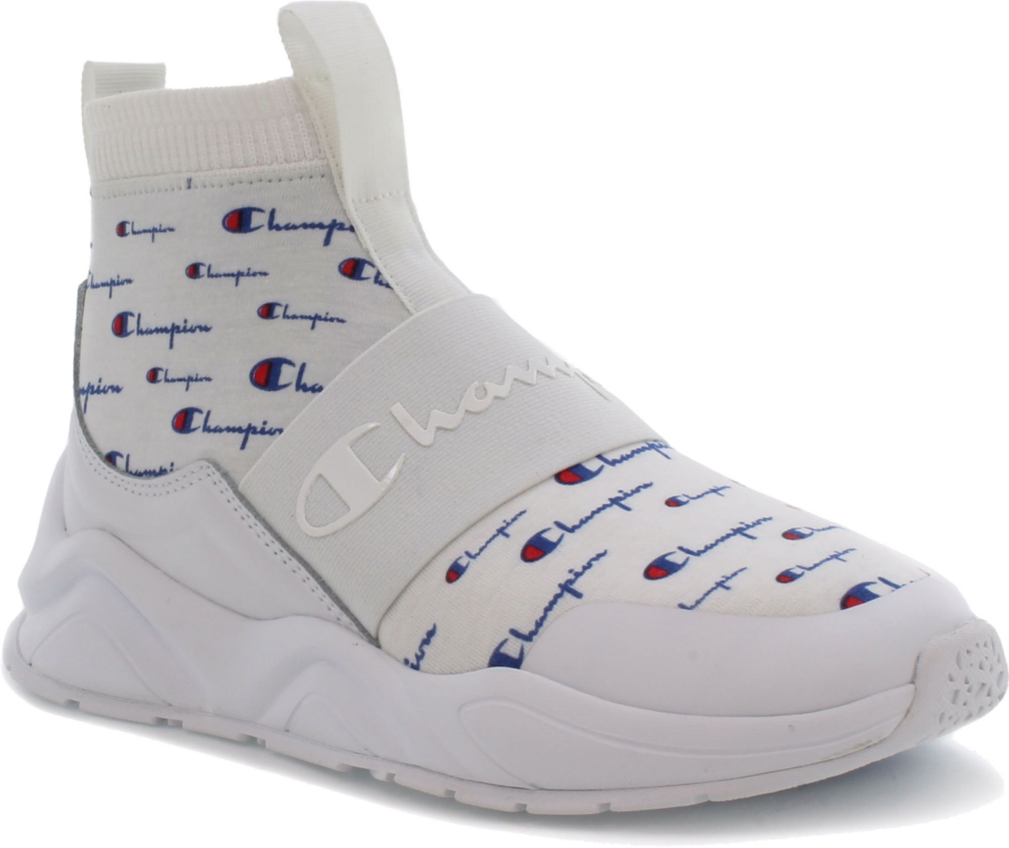 Champion Mesh Upper Elastic Lace Up Textured Sole Sneaker In White