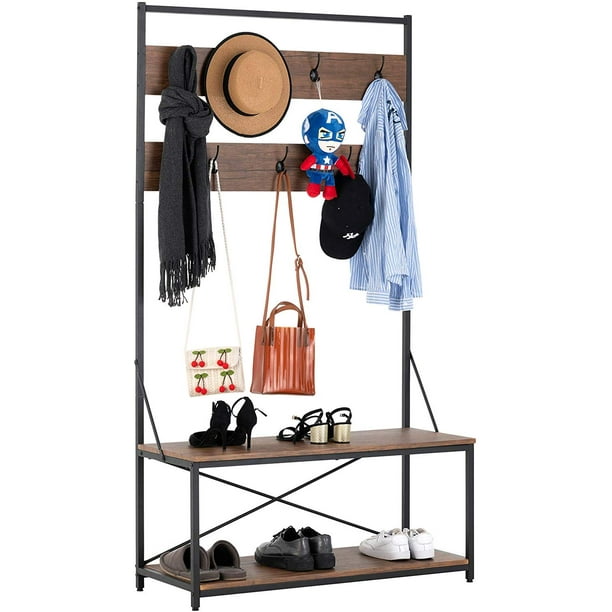 Mecor 3 In 1 Industrial Coat Rack Hall Tree Entryway Shoe Bench With 2 Tier Shoe Bench And Coat Rack With 7 Hooks Large Size Easy To Assemble Rustic Brown Walmart Com Walmart Com