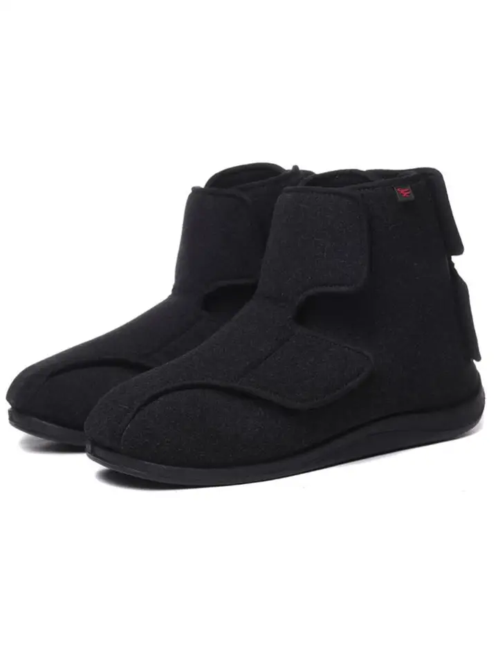 Amazon Com Comfort Finds Mens Edema Boots Extra Wide Roomy Swollen Foot Shoes Soft Adjustable Slippers For Sensitive Skin Diabetic Feet Relief X Large 12 1 2 13 Black Health Personal Care