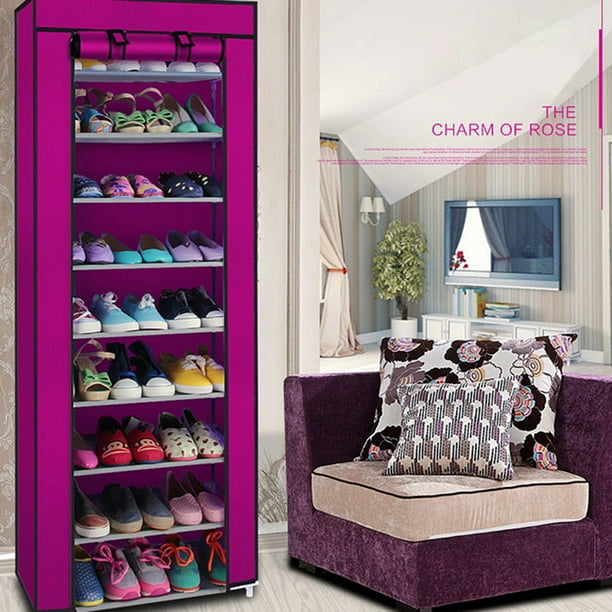 Amazon Com 8 Layer 10 Layer Combination Shoe Cabinet Simple Cloth Fabric Storage Shoes Rack Folding Dust Proof Shoe Shelf Diy Furniture Purple Home Kitchen