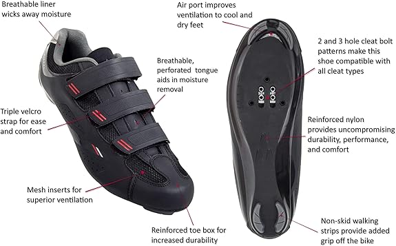 Amazon Com Venzo Bicycle Men S Or Women S Road Cycling Riding Shoes 3 Straps Compatible With Peloton Shimano Spd Look Arc Delta Perfect For Indoor Spin Road Racing Bikes Black Shoes