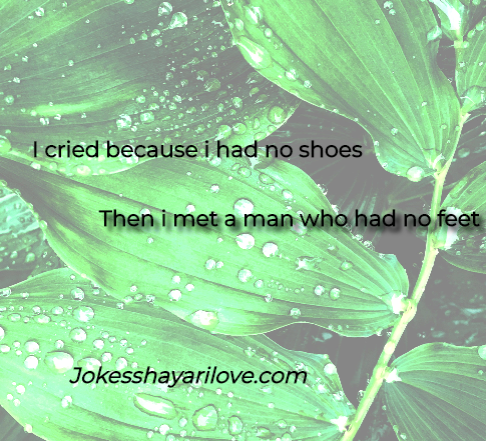 I Cried Because I Had No Shoes Then I Met A Man Who Had No Feet Meaning In Hindi