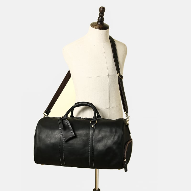 Waterproof Mens Garment Bag For Travel Business Black Large Leather Duffel Bag With Shoe Compartment Carry