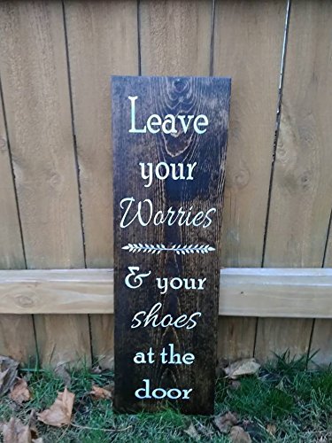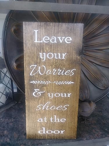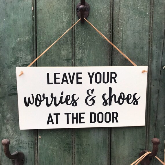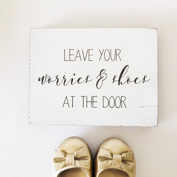Wood Sign Please Leave Your Worries And Your Shoes At The Door 4x10 Country Marketplace