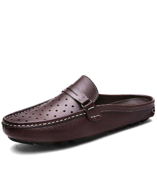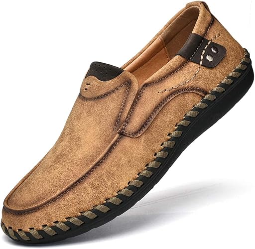 Mens Brown Leather Casual Slip On Shoes