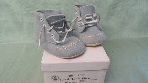 Vintage Blue Felt Mrs Day S Ideal Baby Shoes Size 1 For Antique Baby Doll W Box Baby Dolls Baby Shoes Baby Shoe Sizes