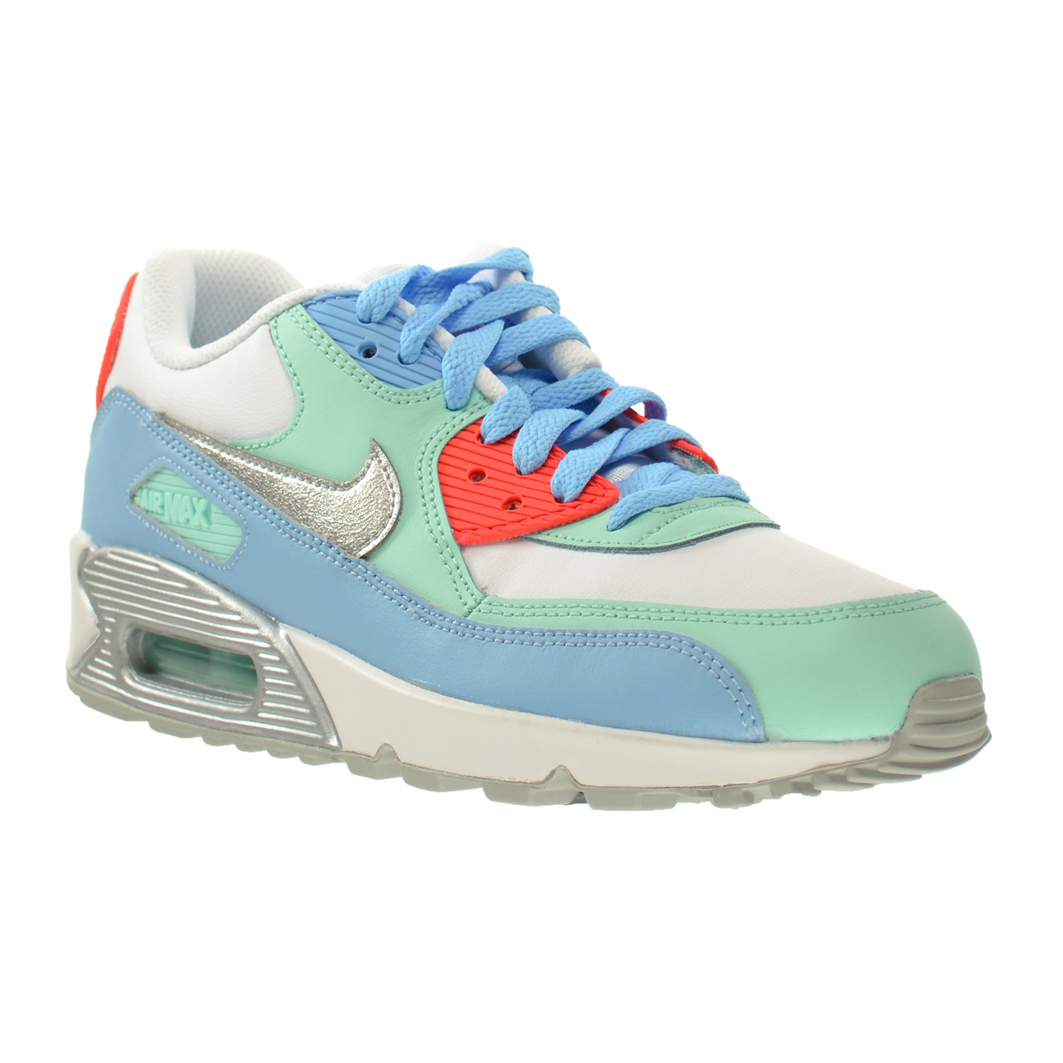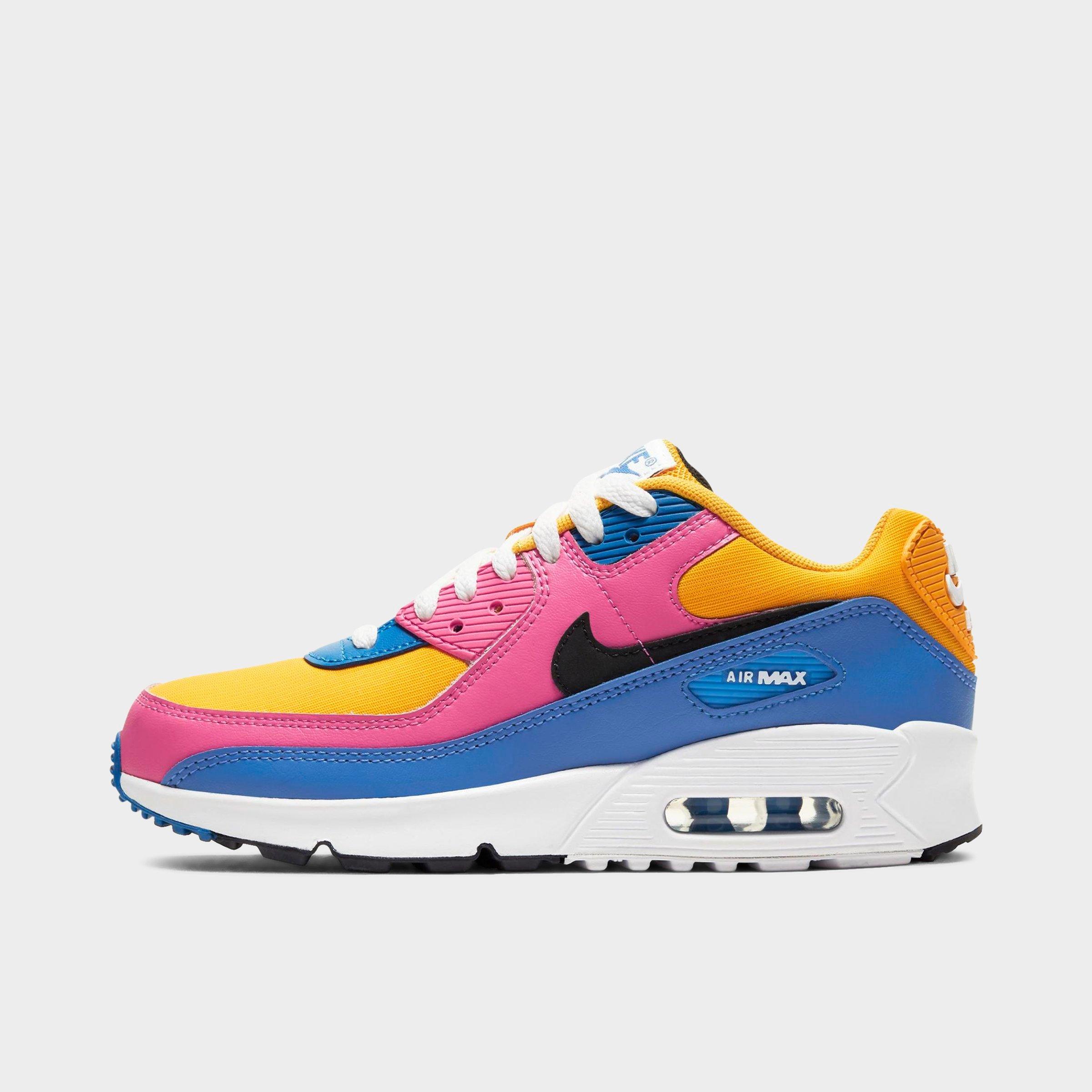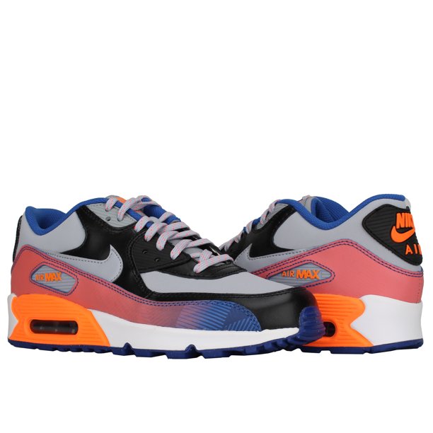 Nike Girls Big Kids Air Max 90 Leather Casual Shoes Pure Platinum Lava Glow Black Aurora