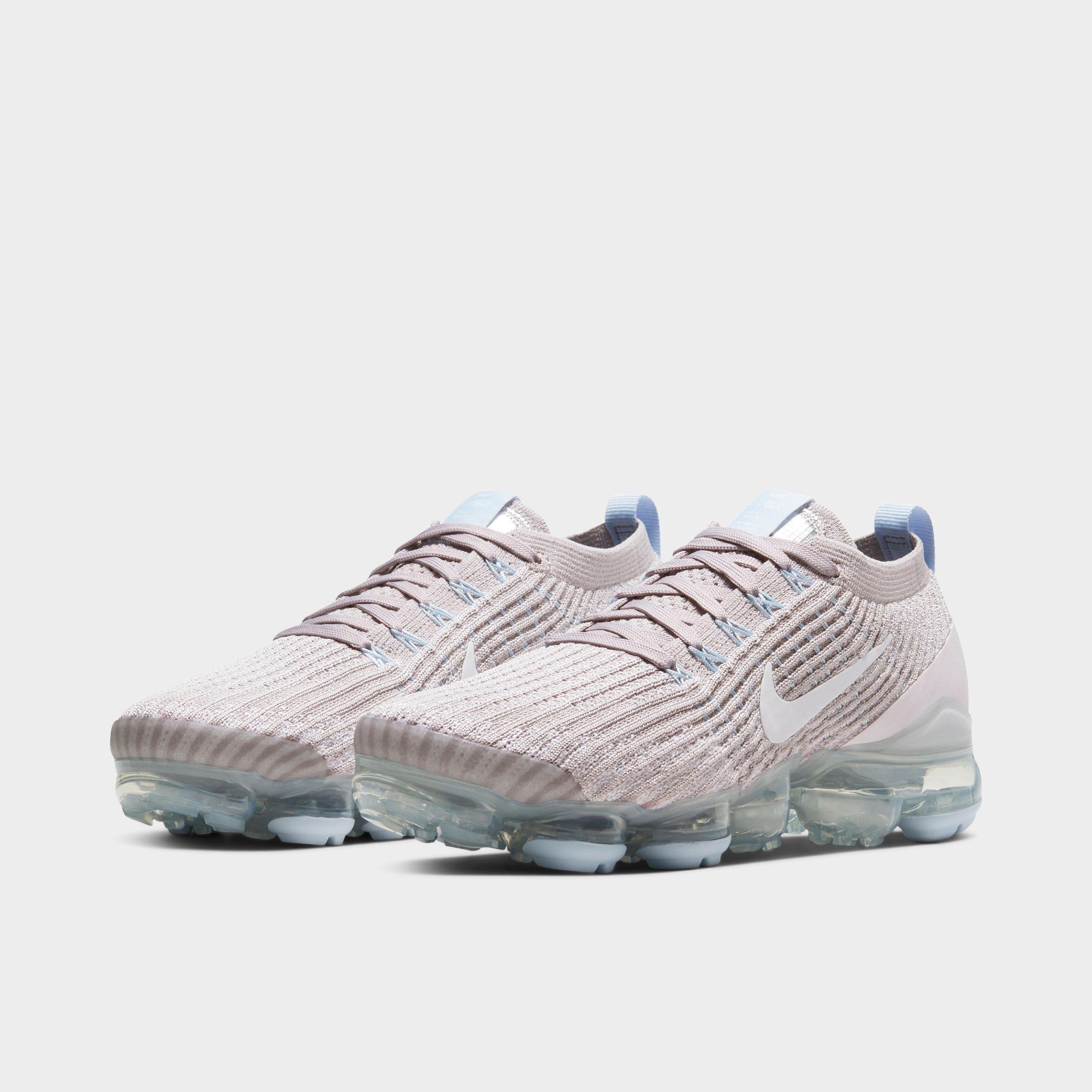 Nike air vapormax flyknit 3 womens shoe violet ashlight violethydrogen bluewhite. Soft lightweight and responsive vapormax technology for a bouncy light as air feel. Shop the latest selection of womens nike vapormax at lady foot locker. Blackanthwhtm sil shoe width.