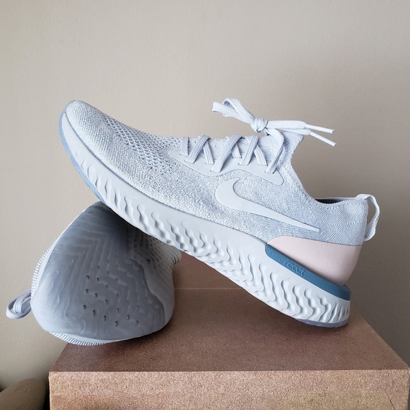Nike Wmns Nike Epic React Flyknit Pure Platinum Pure Platinum Particle Beige Celesti Sneakers Workout Shoes Nike Shox Shoes Womens Athletic Shoes