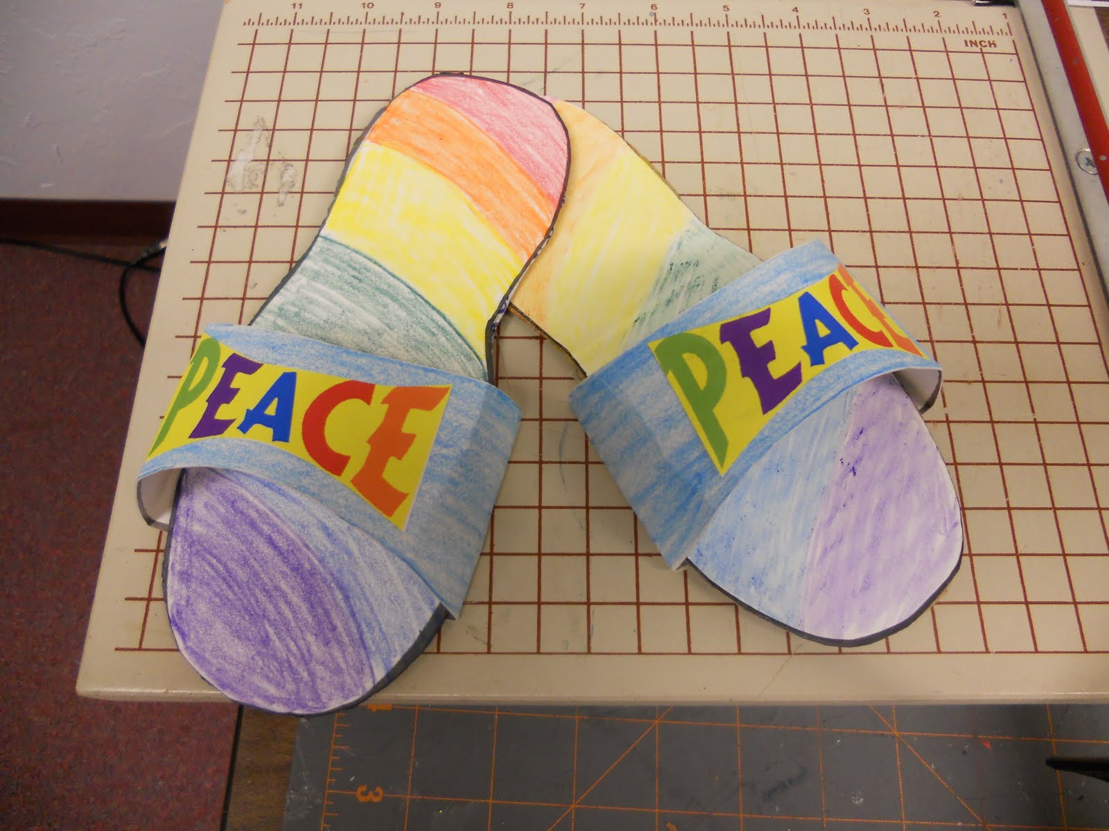 The shoes of peace could be literally represented by making your own sandals. This step should be done by an adult. January 20 2014 by daisyraytheclown.