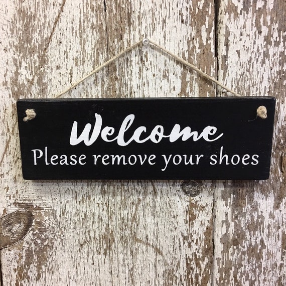Welcome Sign Kindly Remove Your Shoes Thank You Wood Vinyl Sign Farm Heartfeltgiver On Artfire