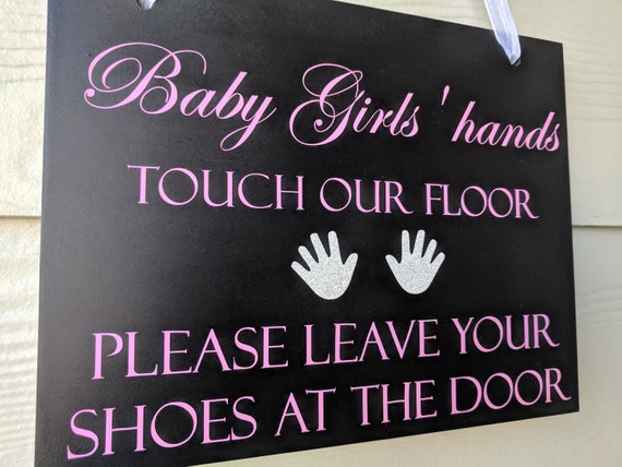 Amazon Com Little Fingers Baby Front Door Sign Please Take Your Shoes Off Sign Baby Shower Gift Handmade