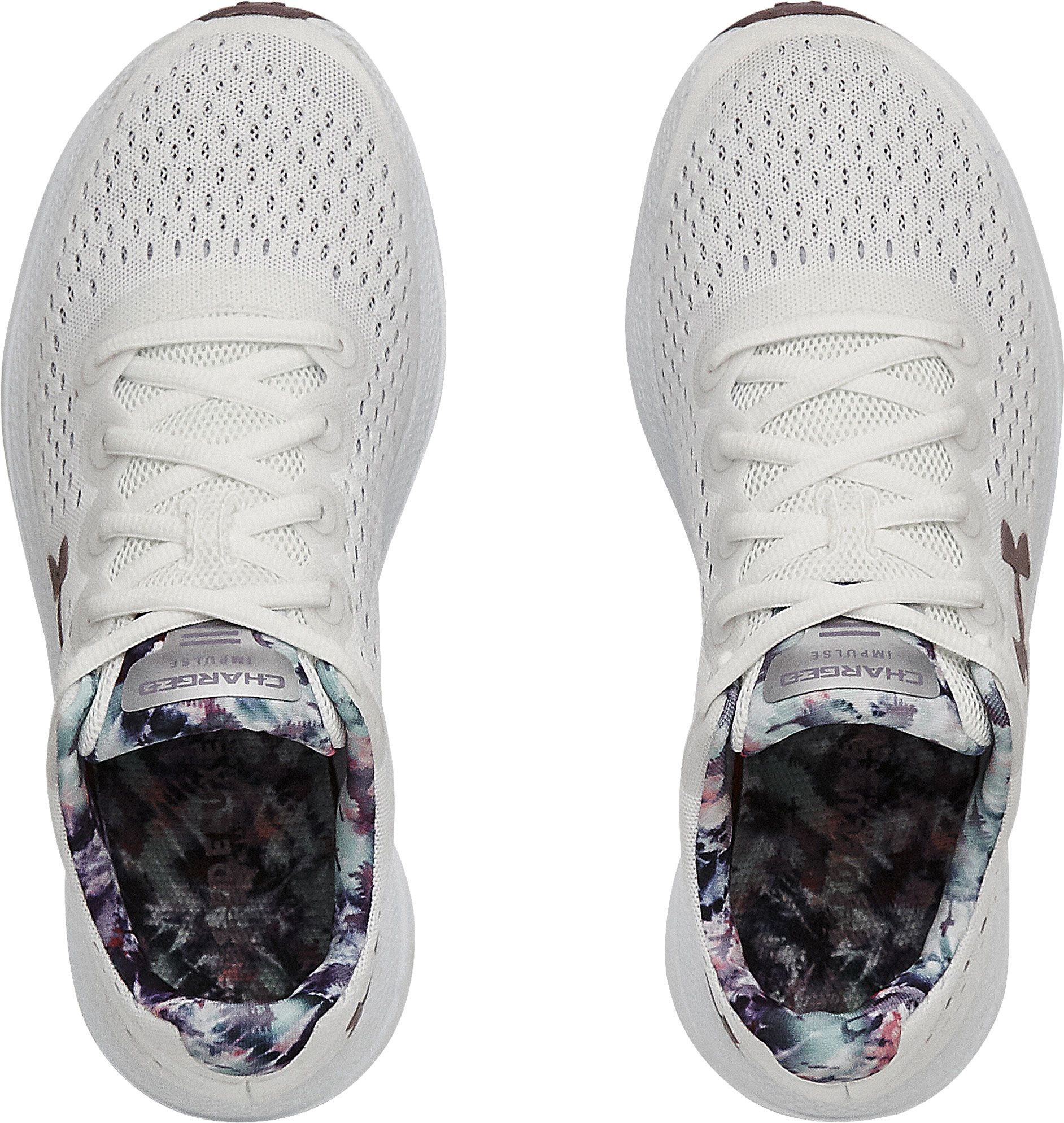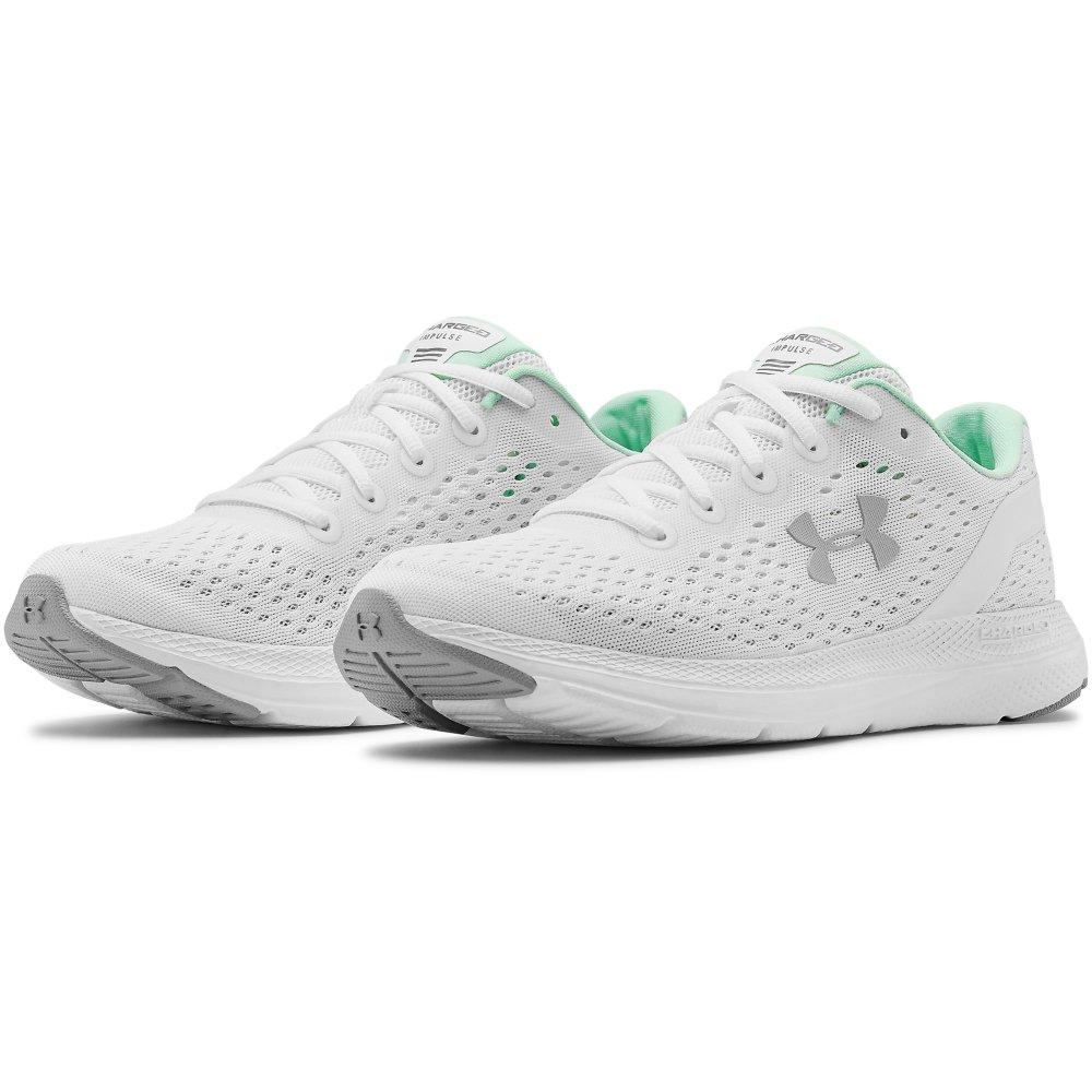 Under Armour Women S Ua Charged Impulse Knit Running Shoes White White Metallic Silver