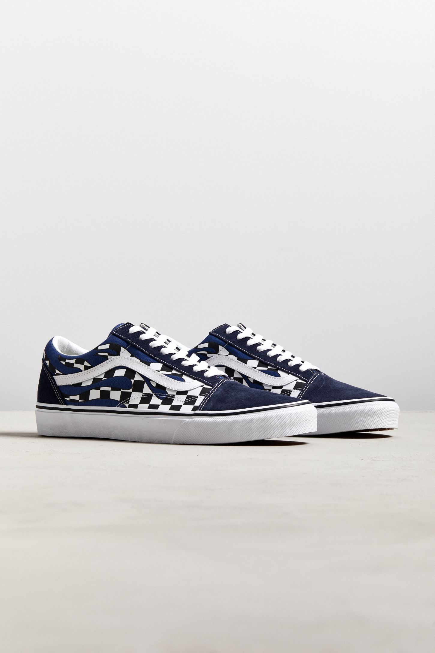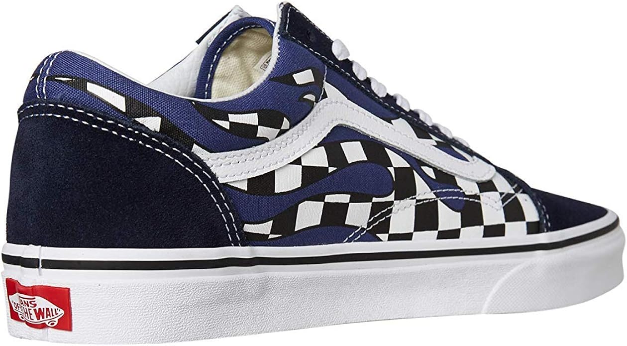Vans Old Skool Checkerboard Flame Navy White Skate Shoes