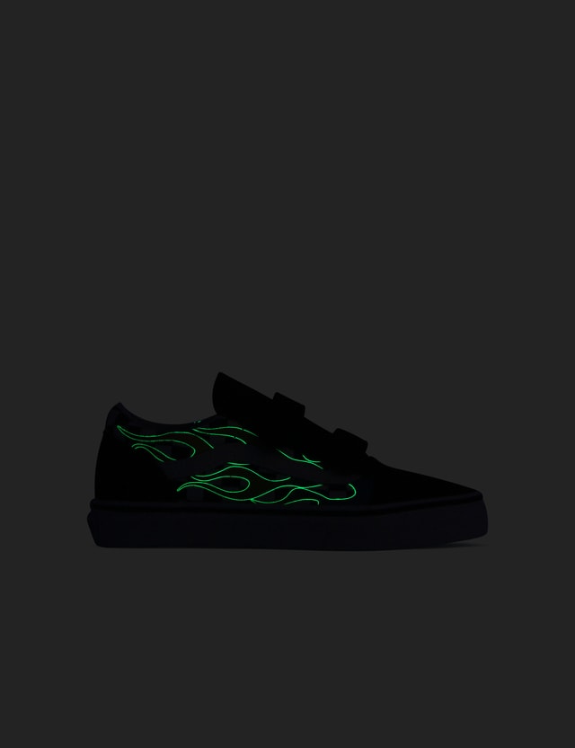 Vans Old Skool V Glow Flame Checkerboard Skate Shoe Little Kid Big Kid Black Flame Journeys