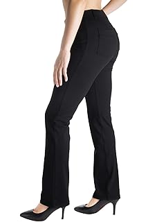 Amazon Com Bamans Yoga Dress Pants For Women Bootcut Slant Pockets Wide Flare Workout Long Bootleg Dress Yoga Pants Clothing