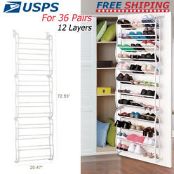 Amazon Com Fancy Buying Over The Door Shoe Rack Holder 36 Pair Shoes Hanging Shelf Storage Shoe Organizer With Hooks Home Kitchen