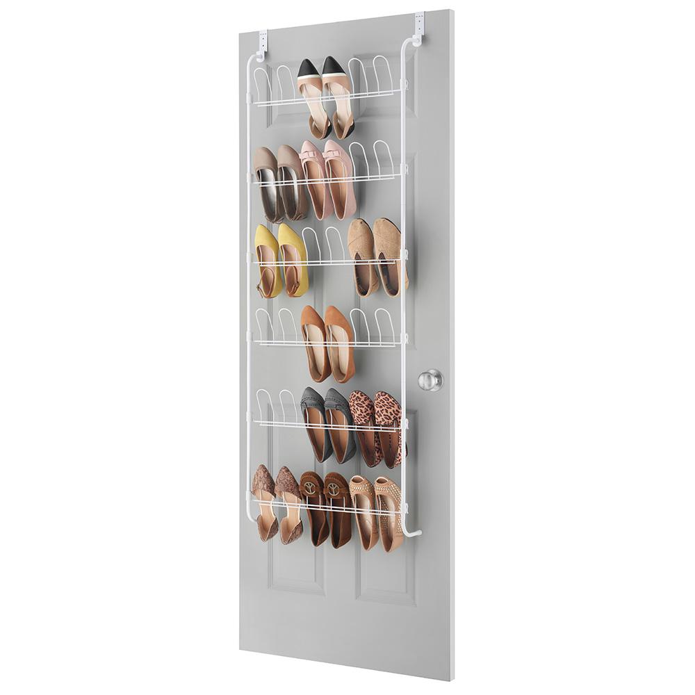 Whitmor Shoe Rack Collection 22 63 In X 74 50 In 36 Pair Resin Over The Door Shoe Organizer In White 6486 1746 Wht The Home Depot