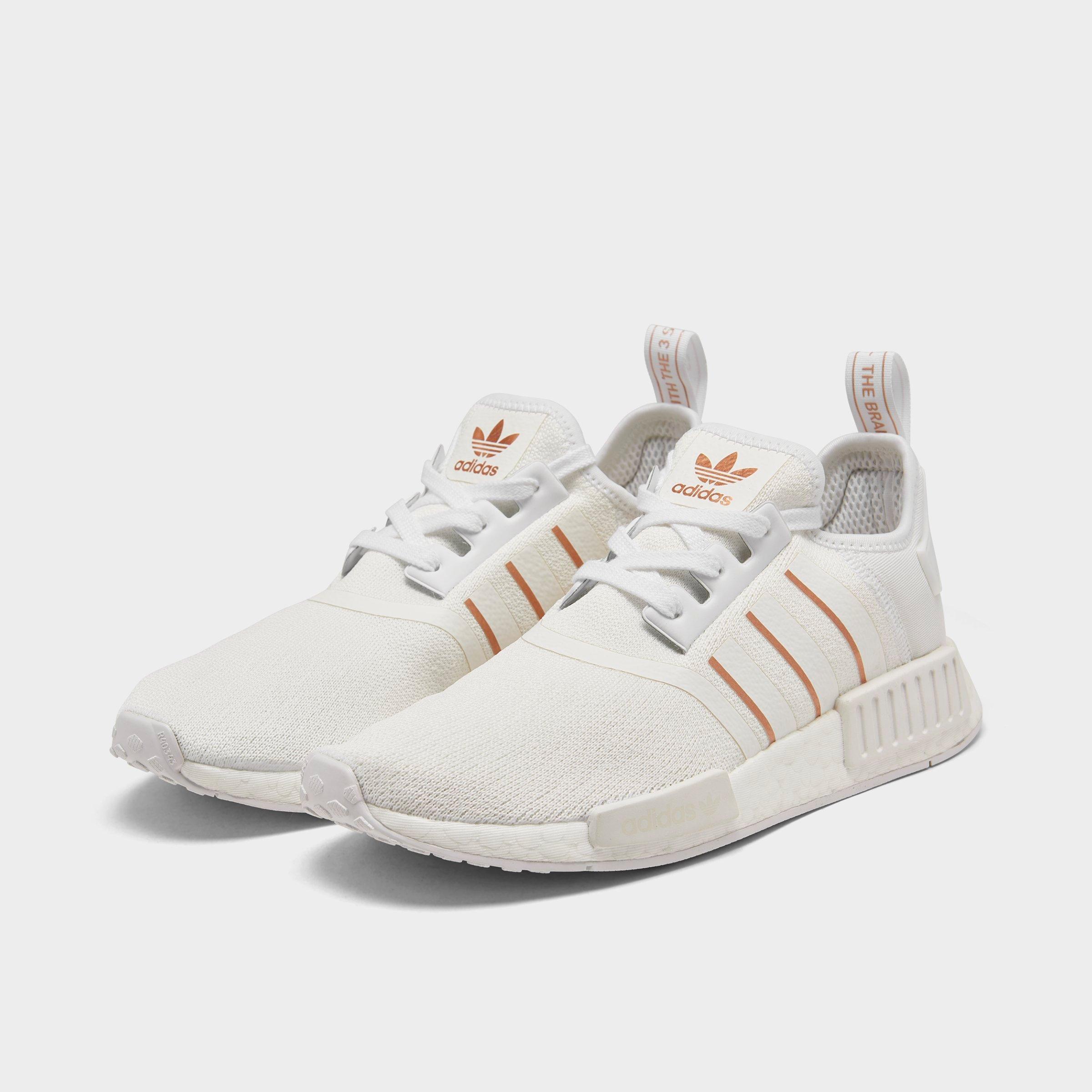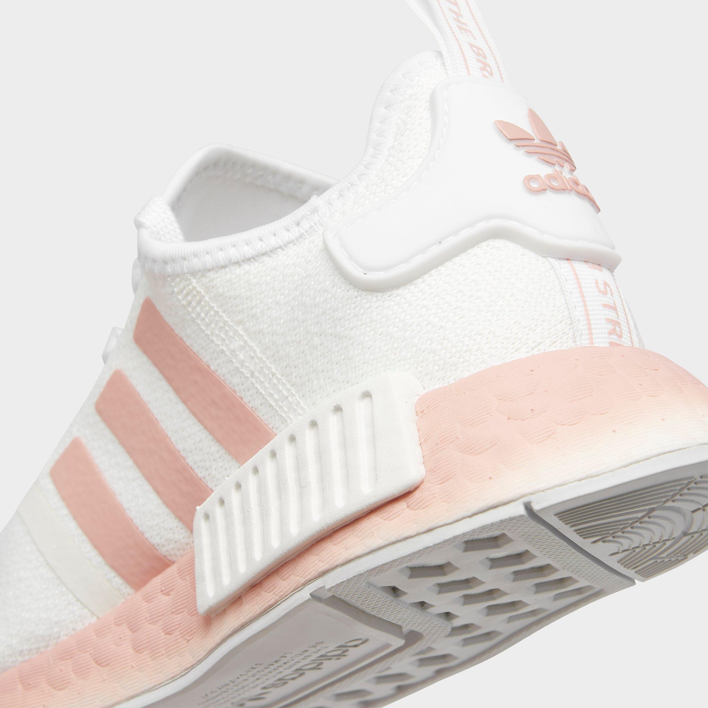 Three Quarter View Of Women S Adidas Nmd R1 Casual Shoes In Crystal White Crystal White Orchid Adidas Shoes Women Womens Nmd Adidas Women
