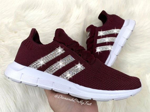 Bling Adidas Swift Run Women S Shoes W Swarovski Crystals On Stripes White 165 00 Picclick