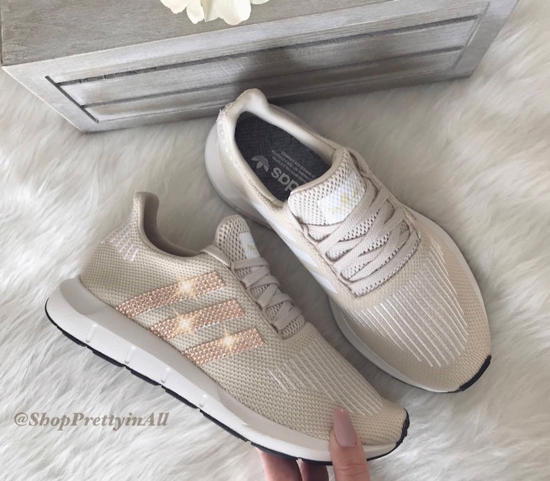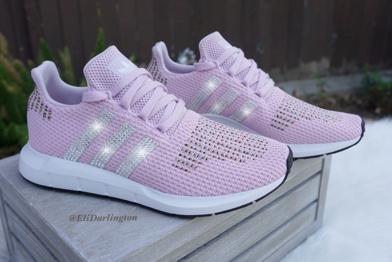 Swarovski Women S Adidas Swift Run Casual Shoes Customized With Rose Gold Swarovski Crystals Luxe Ice
